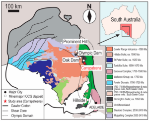 | Mineralization | Iron oxide copper-gold (IOCG) Uranium, Rare Earths |